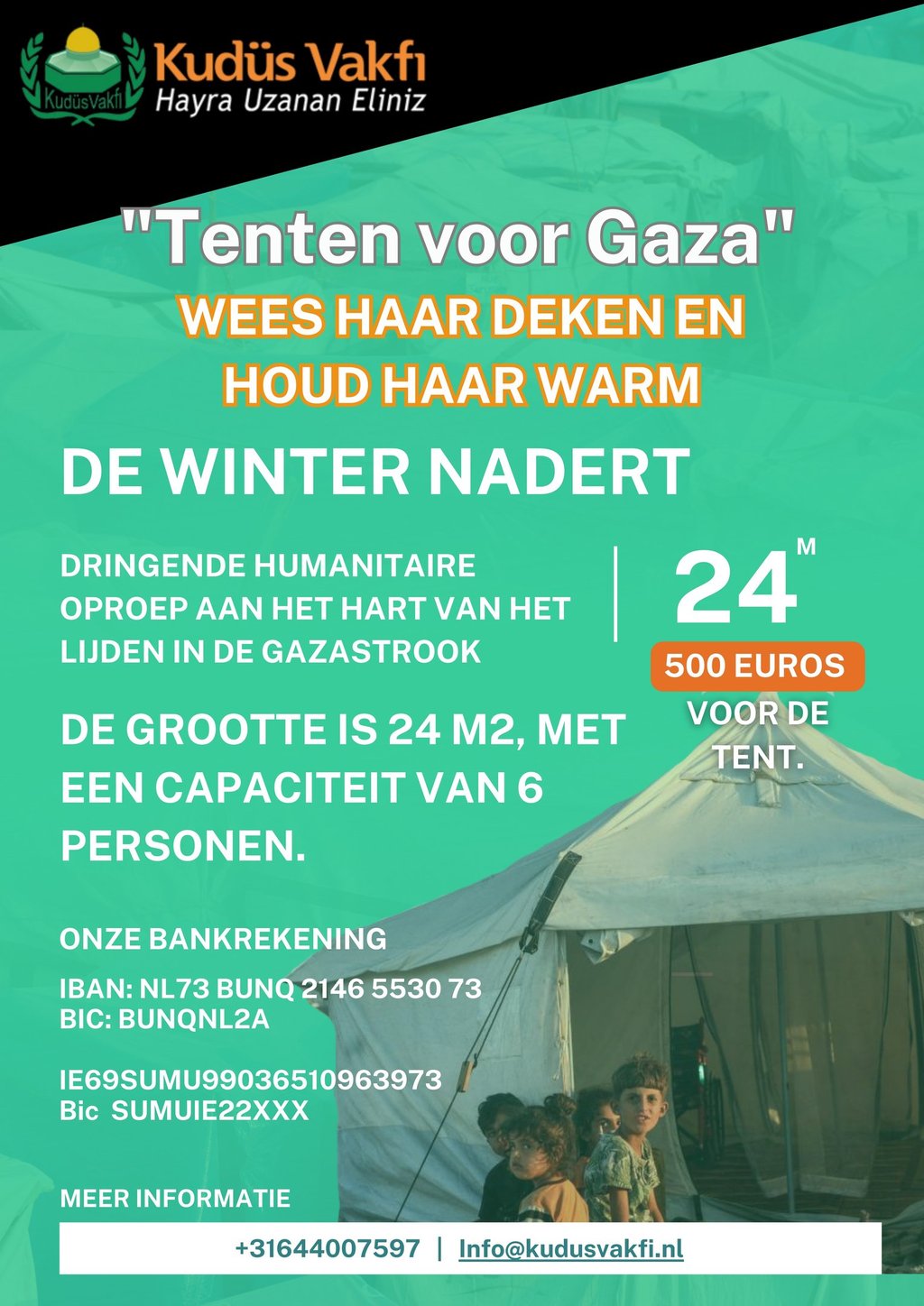 We roepen iedereen op om te reageren op deze dringende humanitaire oproep. Laten we de kinderen van Gaza steunen en de dekking en warmte zijn die ze nodig hebben in deze moeilijke tijden. Onze solidariteit kan het keerpunt zijn dat hen een normaal en gelukkig leven brengt, ver van lijden en angst.